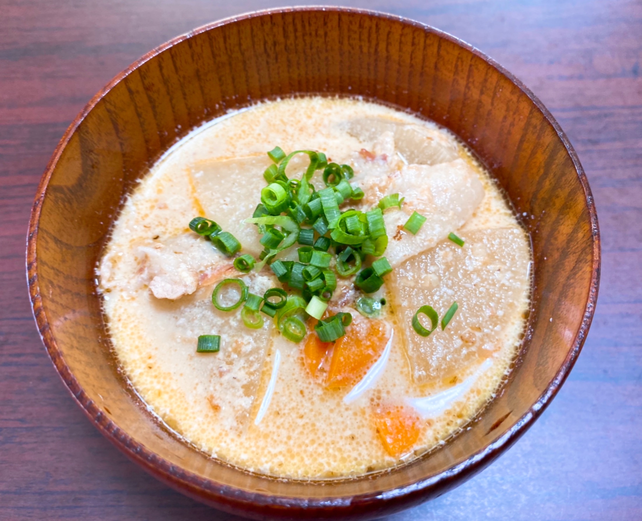 かつお出汁250ml、みそ大さじ1強、安曇野牛乳100ml、油小さじ1
