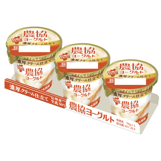 - 信州産生乳と国産生クリームを使用し、濃厚でクリーミーな味わいに仕上げたヨーグルトです。ファミリー向けの3連タイプで、お子さまから大人まで、家族みんなでシェアしてお楽しみいただけます。