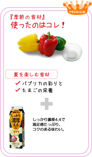 しっかり濃厚4.4でごはんを炊き、溶き卵をまぜることで生クリームを入れたカルボナーラのような仕上がりになります。 最後にパプリカを散らして天の川をイメージ。七夕を演出します。